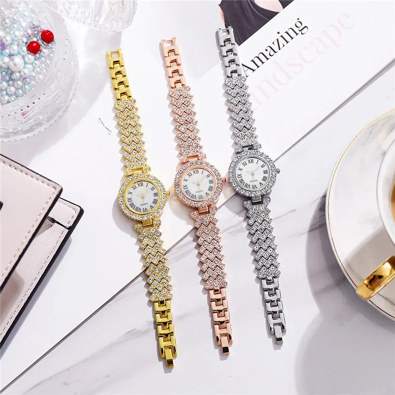 2PCS Women's Rhinestone Quartz Watch & Bracelet Set – Roman Dial Stainless Steel Fashion Gift
