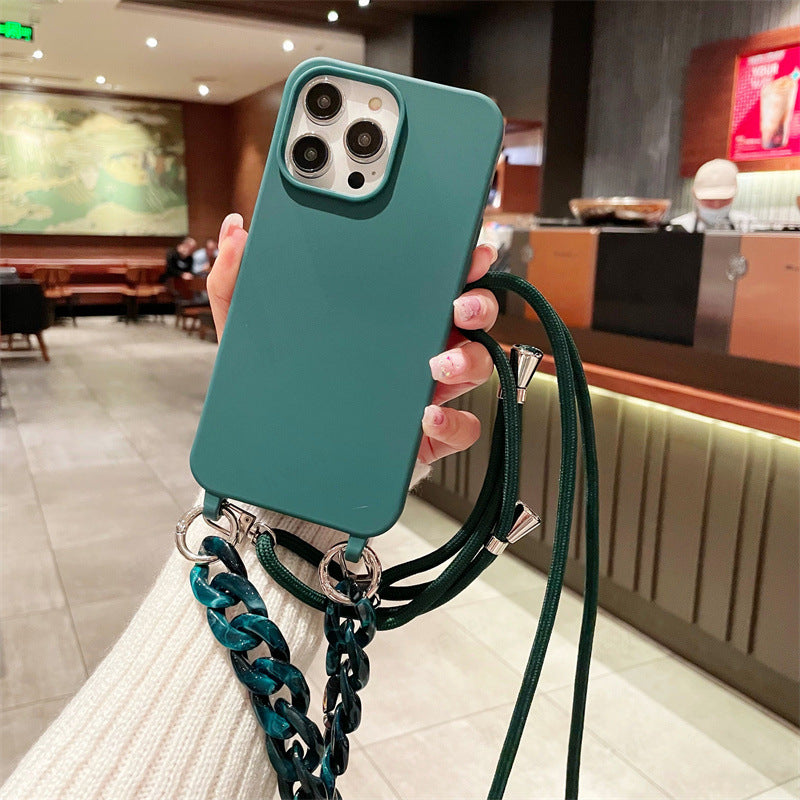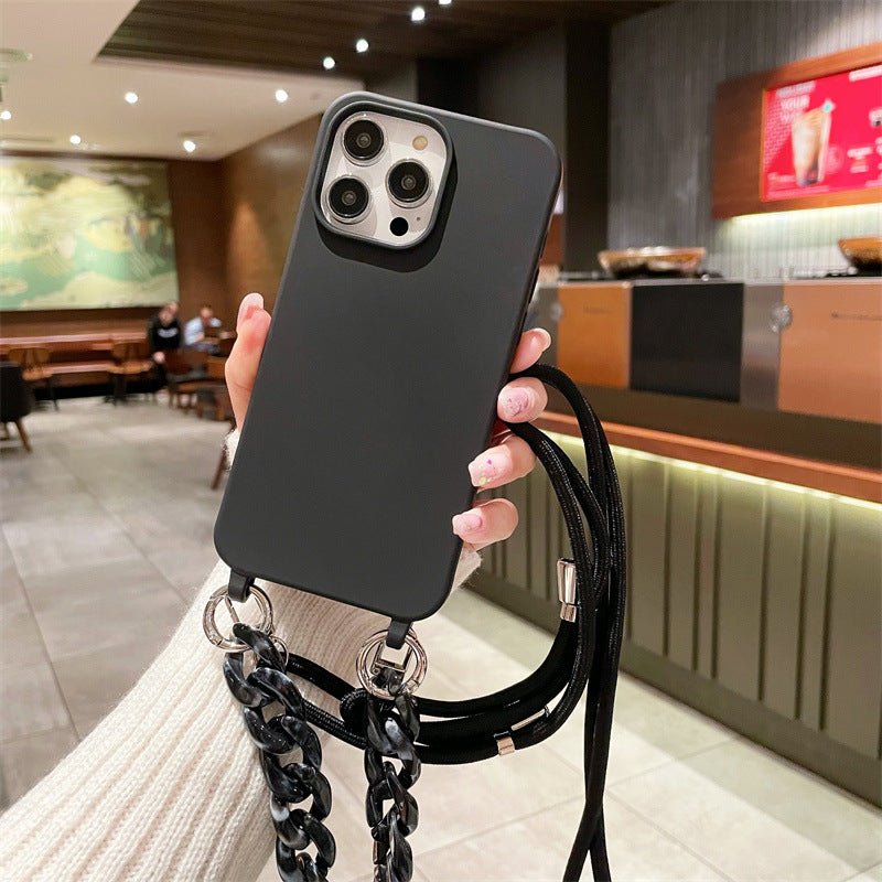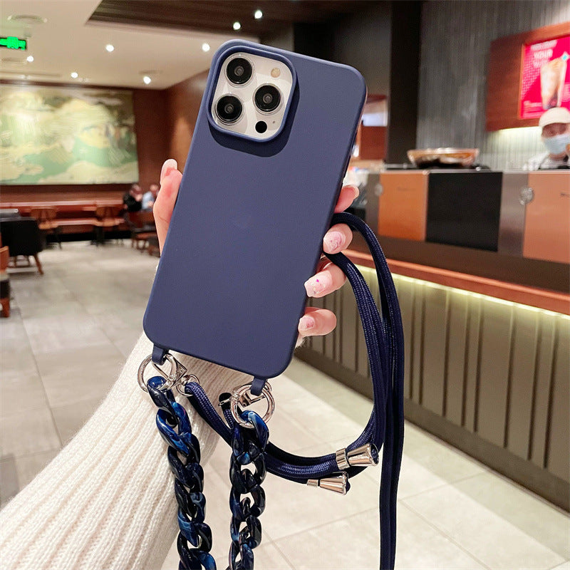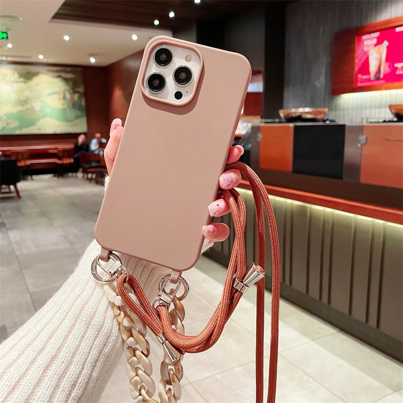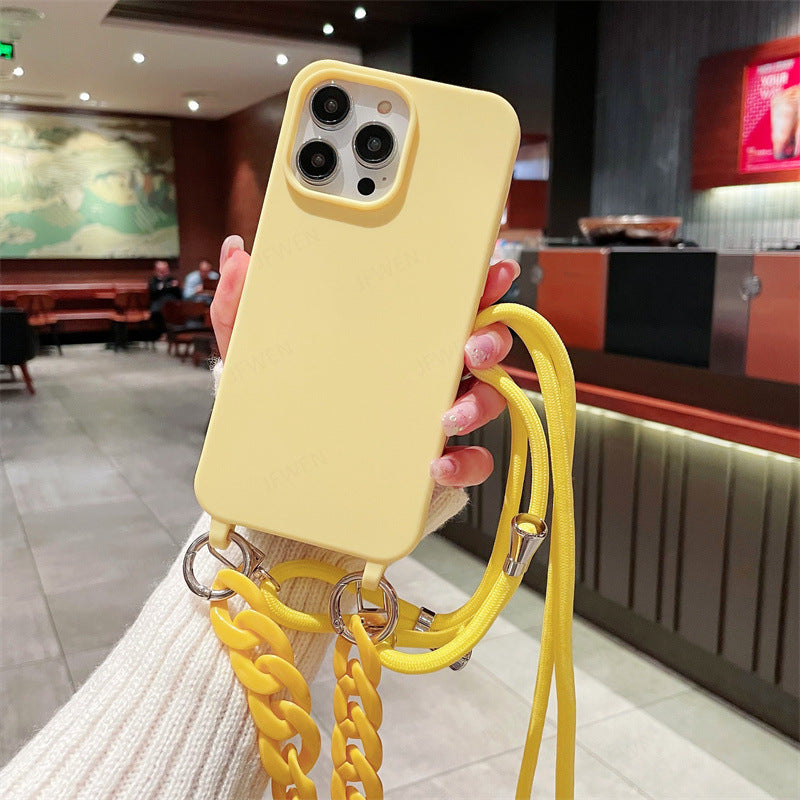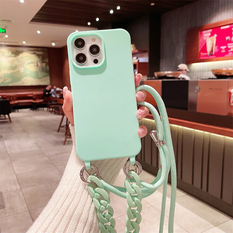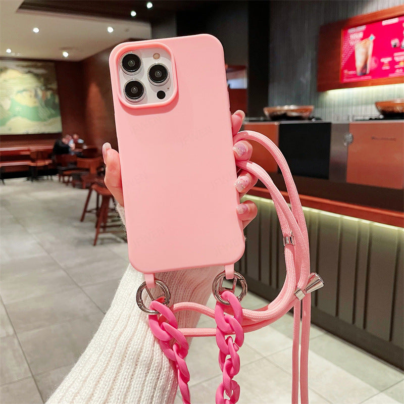 Cross-border pure color lanyard Messenger mobile phone case suitable for Apple Samsung silicone mobile phone case chain mobile phone case