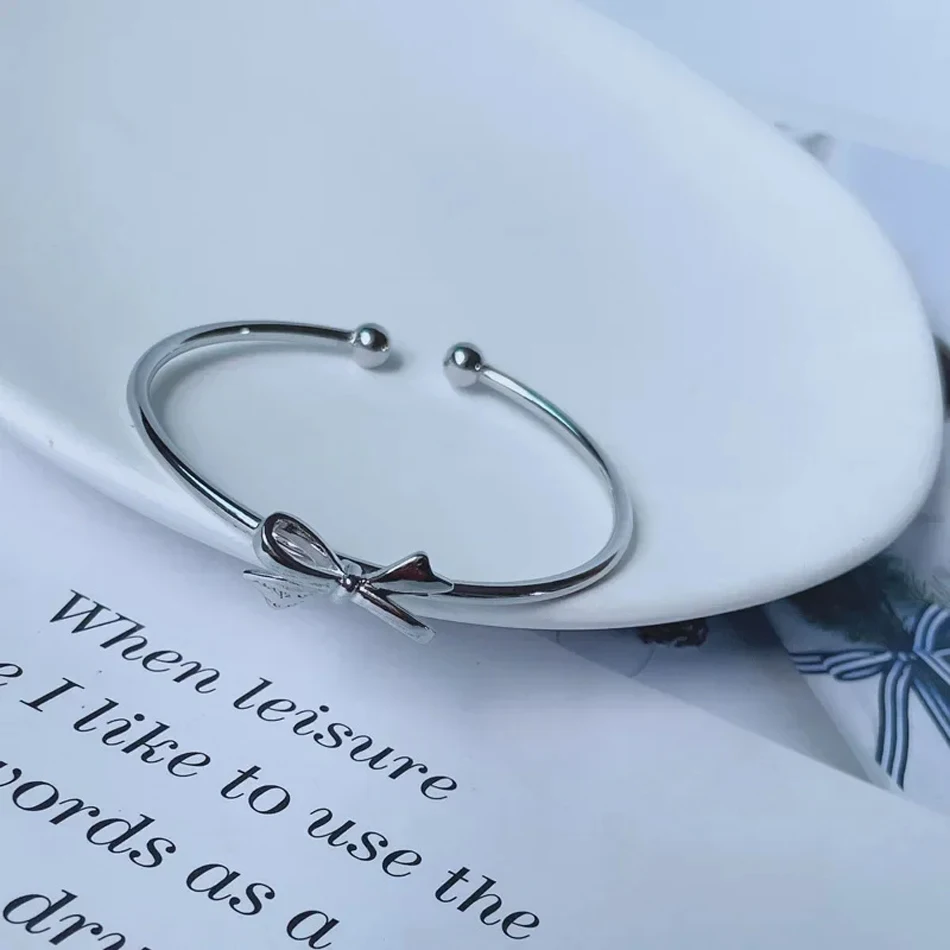 Fashion 925 Sterling silver Cute romantic bow Bangles for women noble bracelets trend party wedding designer jewelry charm gifts