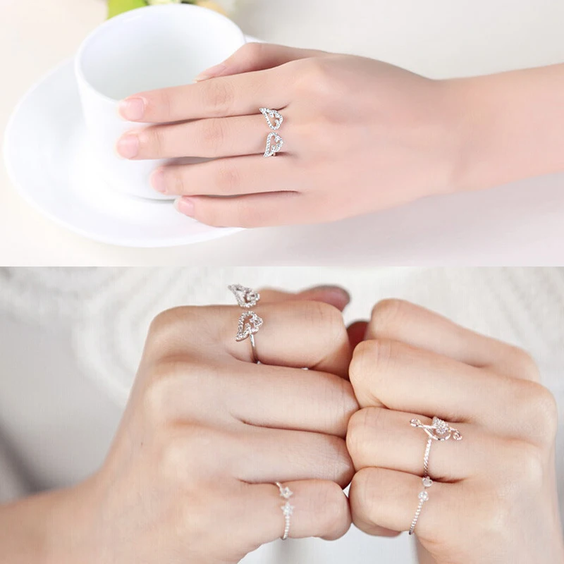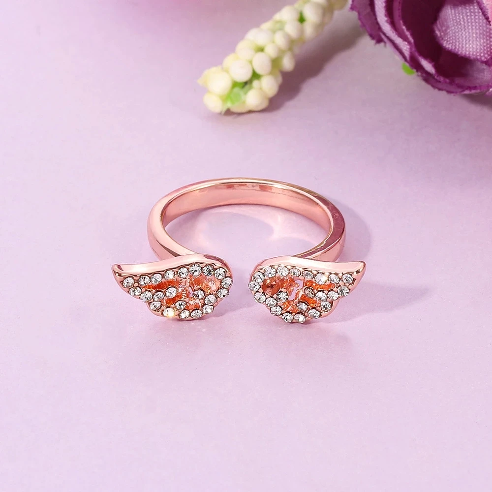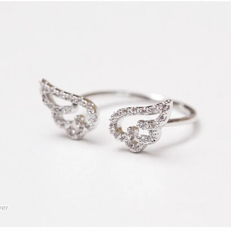Korean Style Angel Wings Adjustable Ring – Silver Color Rhinestone Finger Jewelry for Women, Party & Birthday Gift
