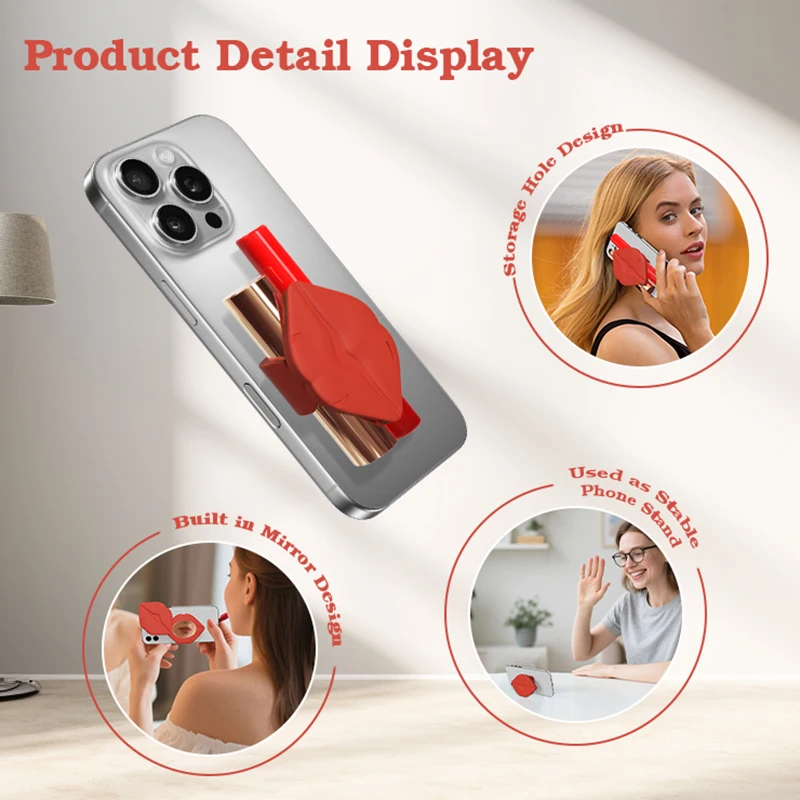This smart design combines elegance and practicality in one sleek silicone case. The built-in mirror lets you check your look anytime, while the lip gloss holder keeps your favorite shade within reach. Made from durable, self-adhesive silicone, it fits securely on your phone and removes easily without residue.