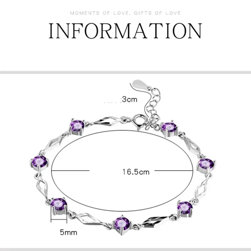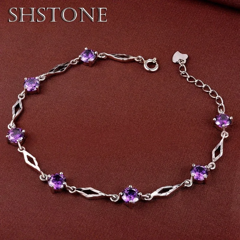 URLOVER 925 Sterling Silver Fashion Women Bracelets Purple Zircon Charm Bracelet Fine Jewelry Accessories Gift For Wedding Party