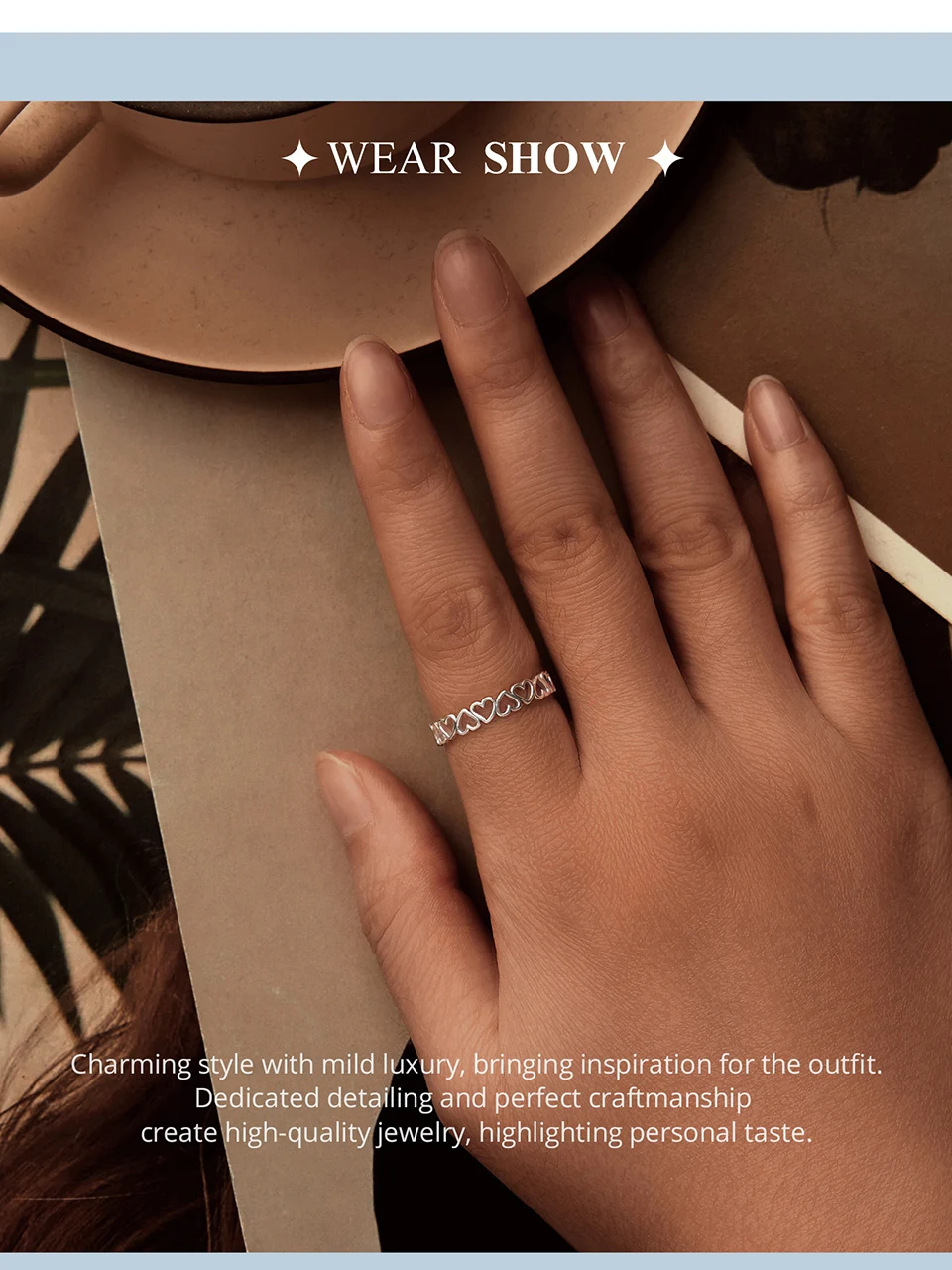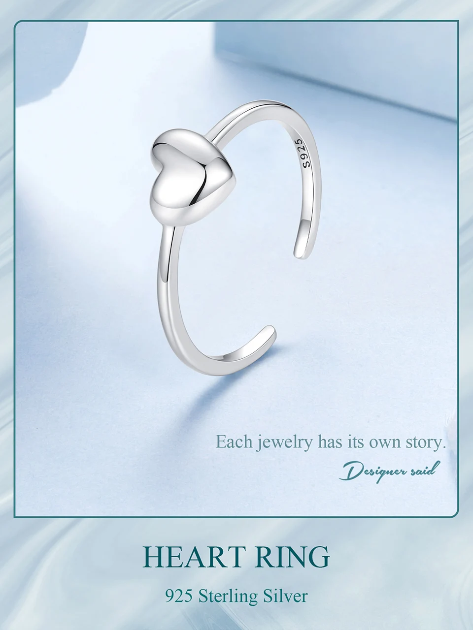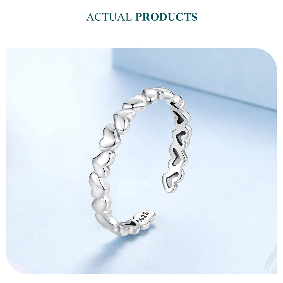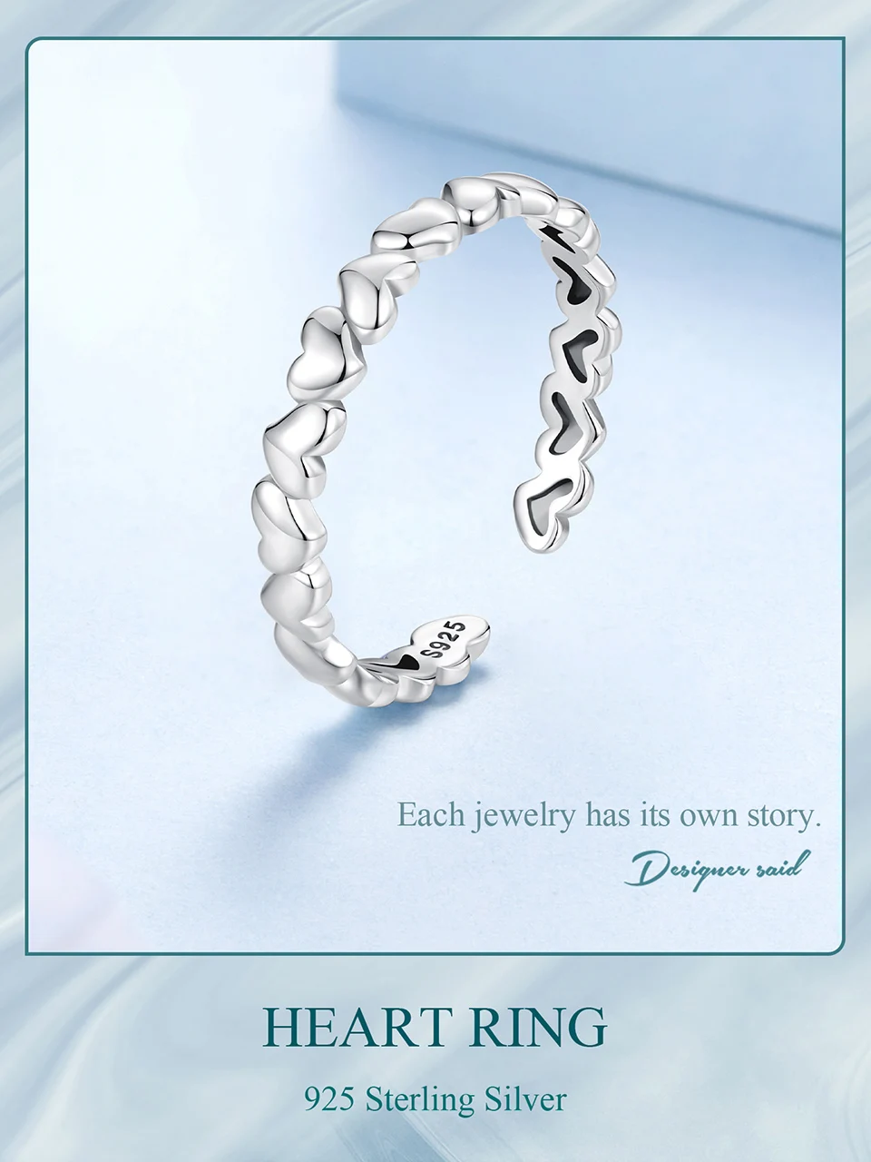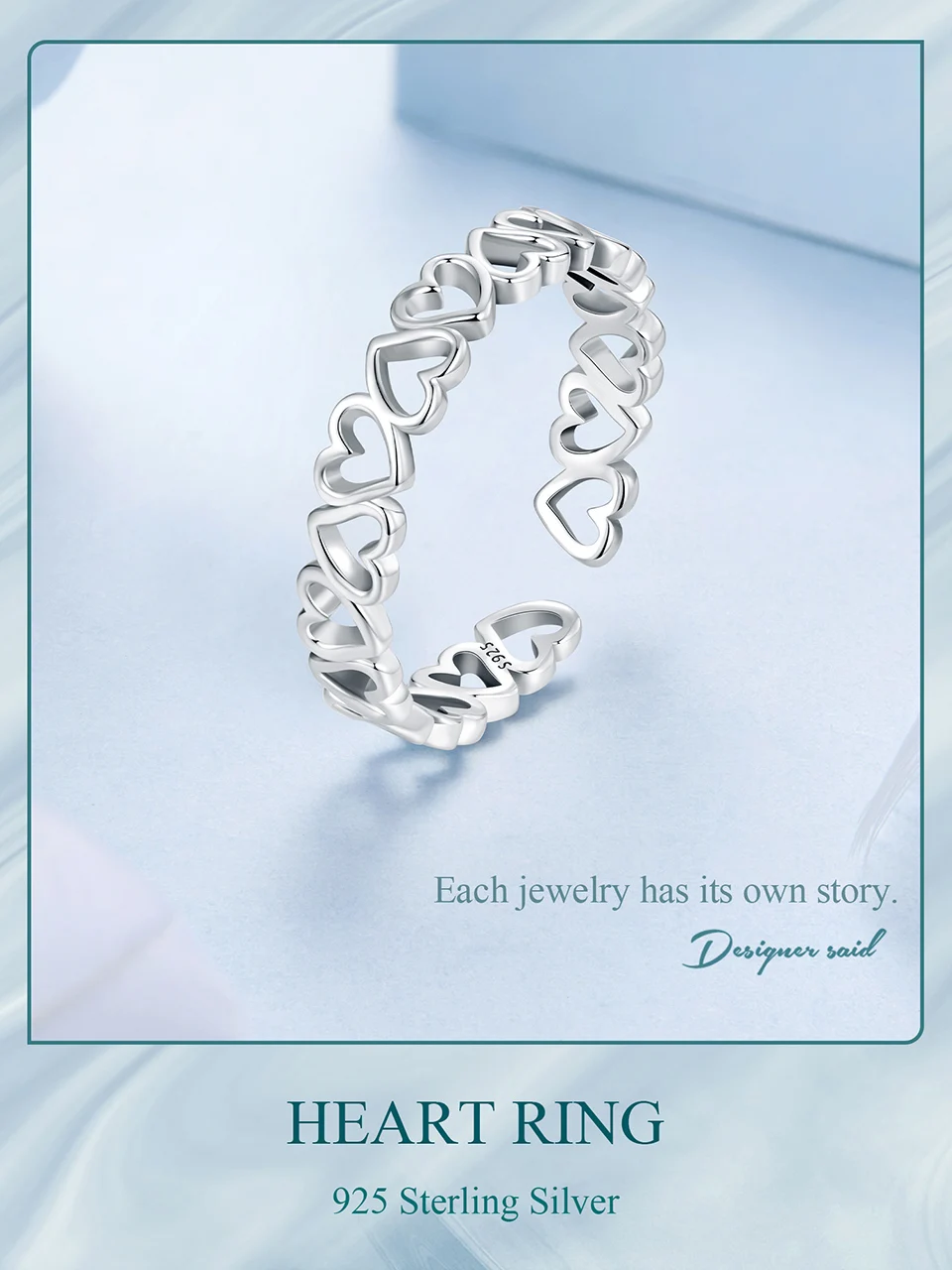 WOSTU 925 sterling Silver Hollow Heart Open Ring Jewelry Lovely Heart-shaped Stackable Rings Gift For Mom