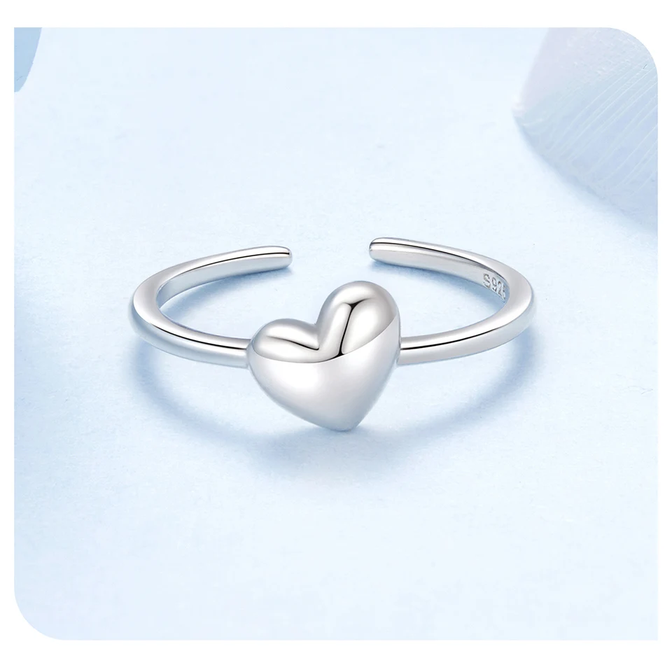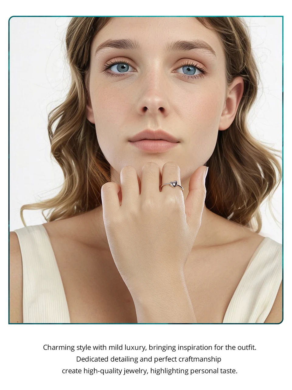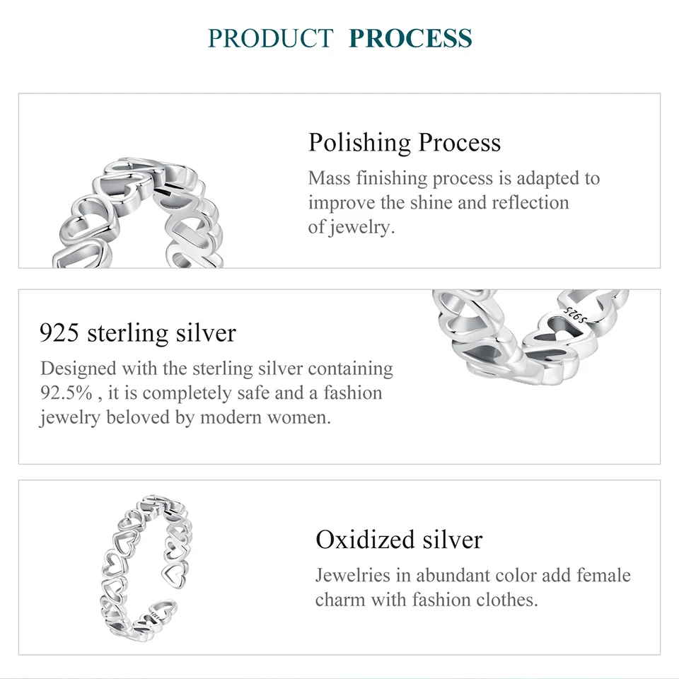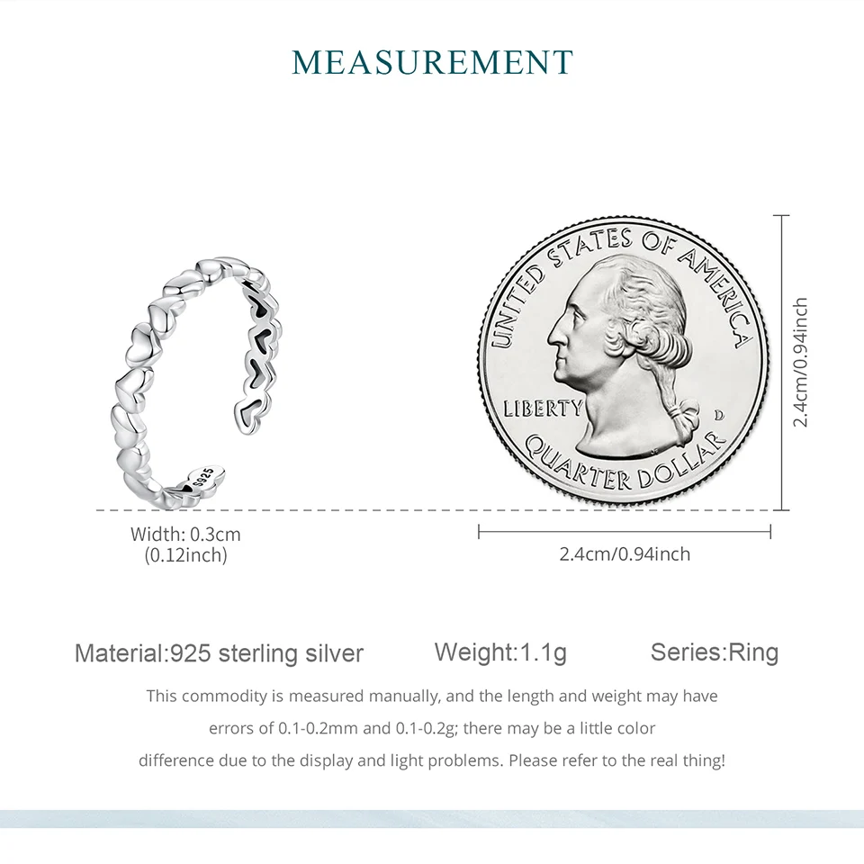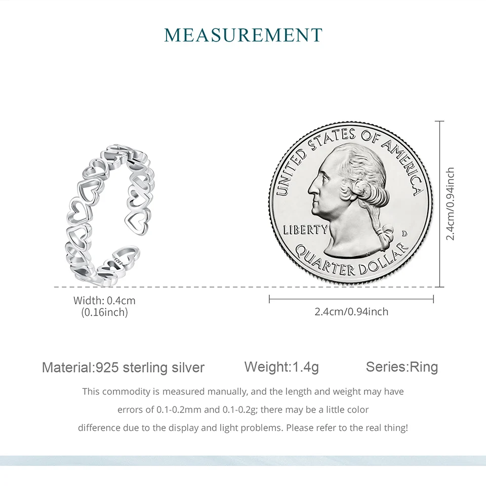 WOSTU 925 sterling Silver Hollow Heart Open Ring Jewelry Lovely Heart-shaped Stackable Rings Gift For Mom