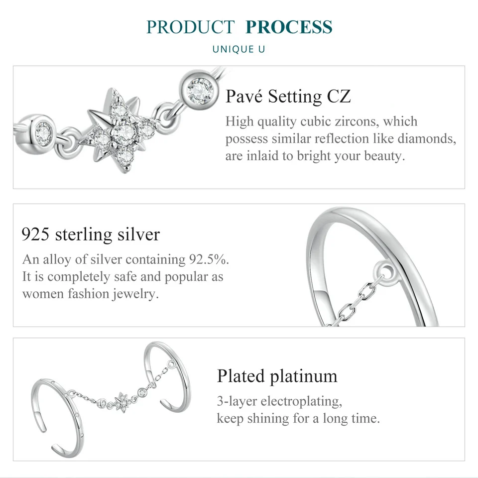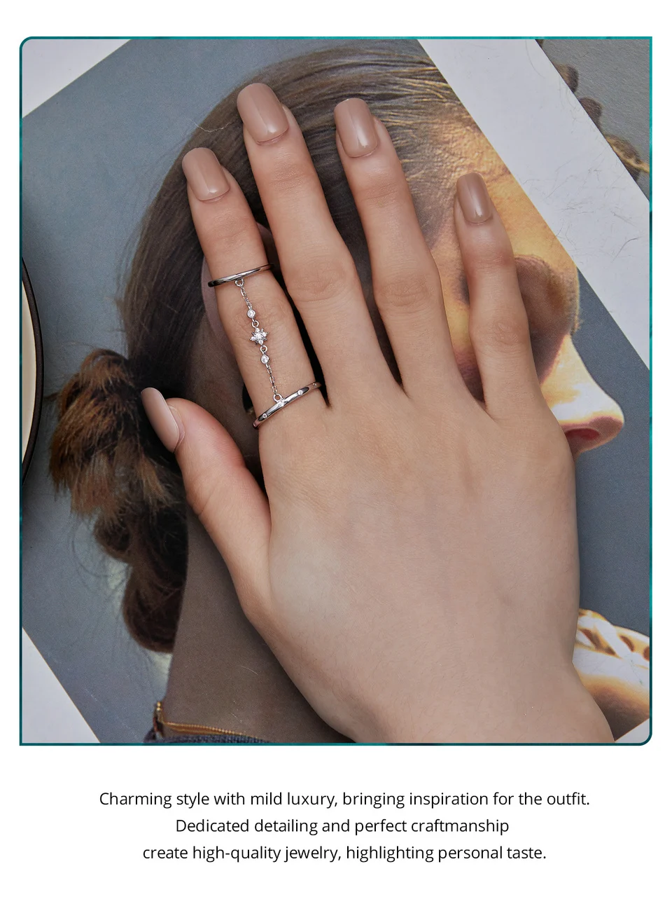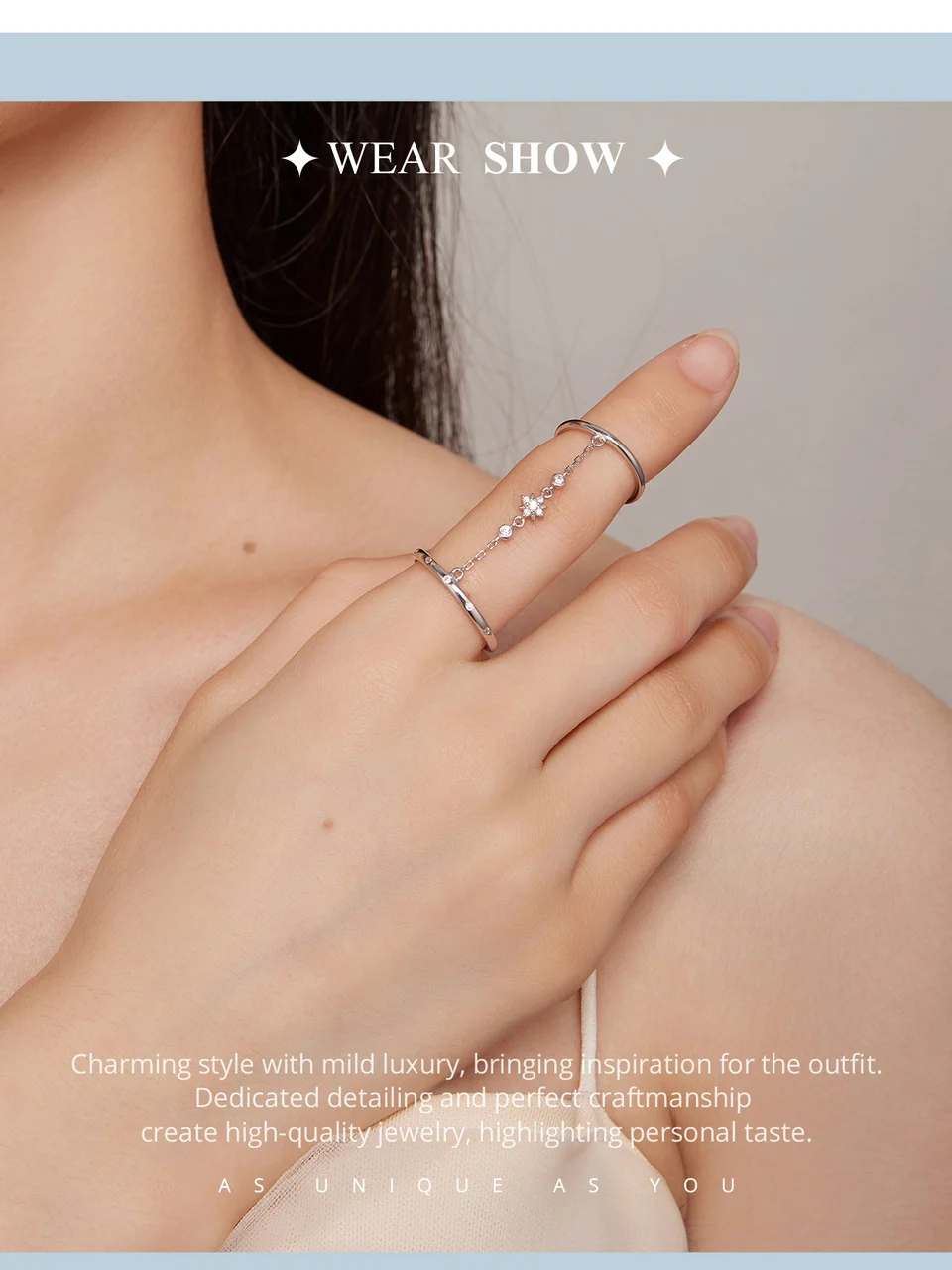 WOSTU Real 925 Sterling Silver Open Chain Ring – Double Circle Link Design for Women | Wedding & Party Jewelry Gift